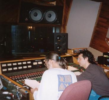 producer, Mack, and sound engineer, Dave, listening to recorded tracks.